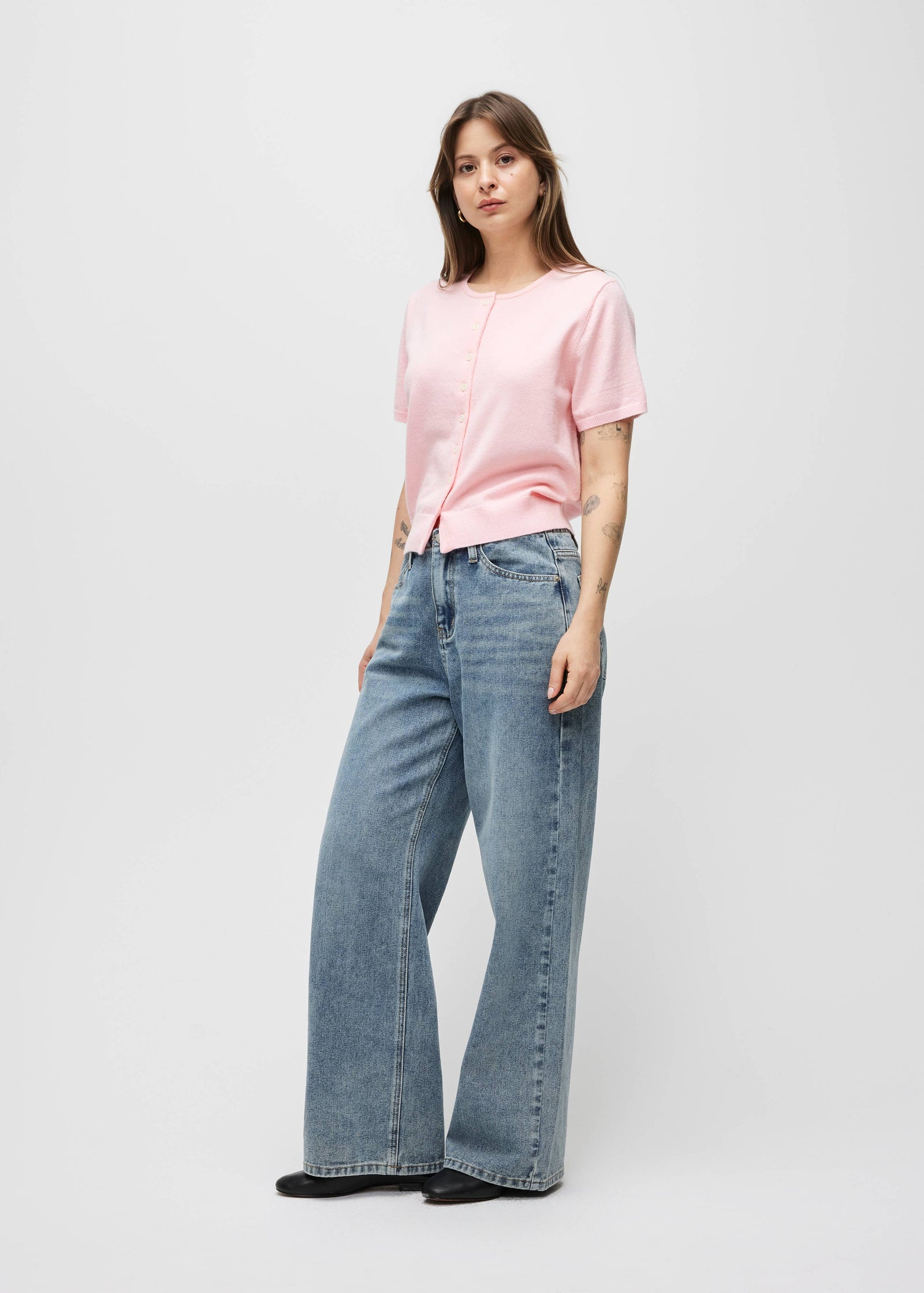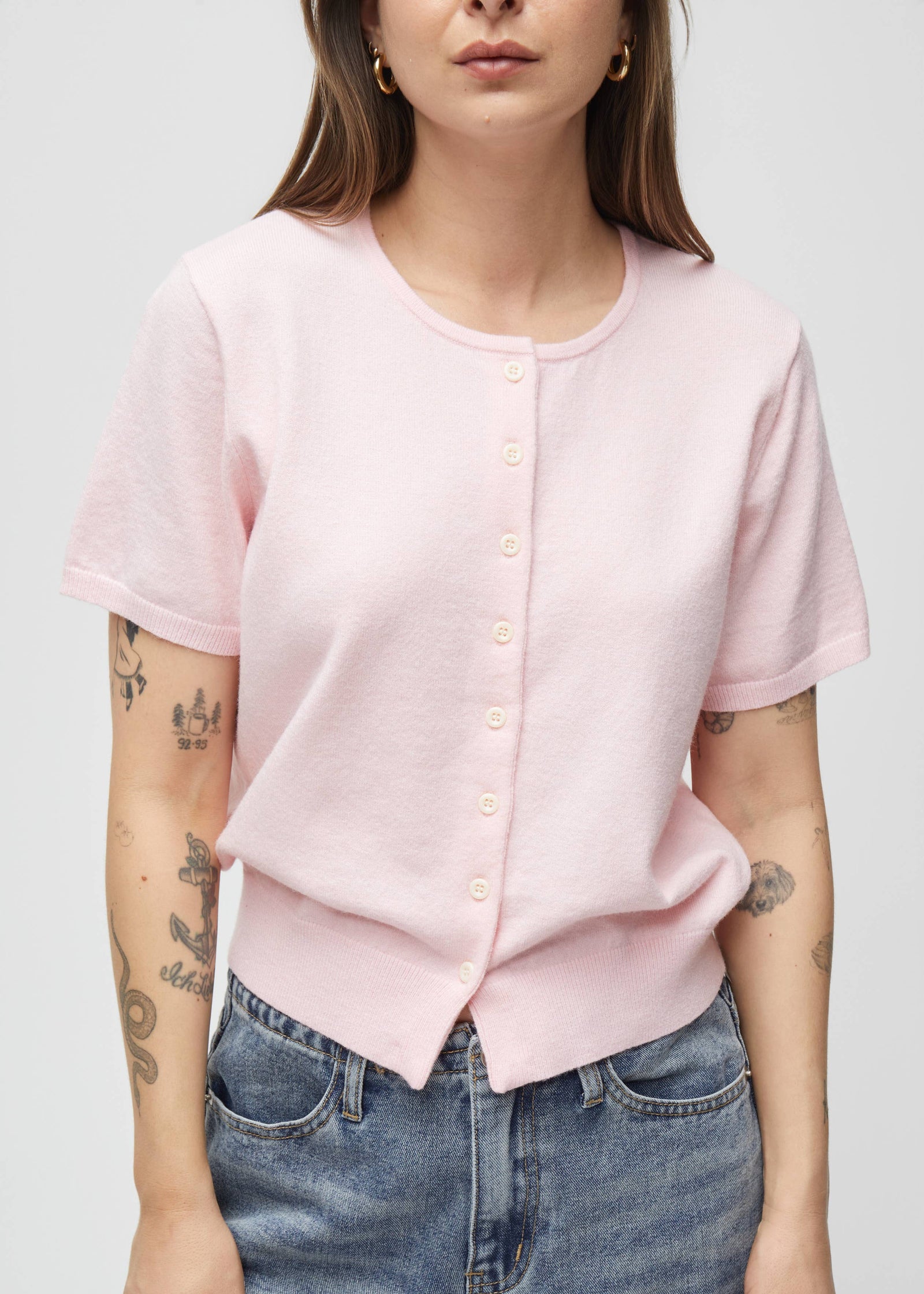 $54.00 USDThe Robyn Short Sleeve Cardigan in Pink
