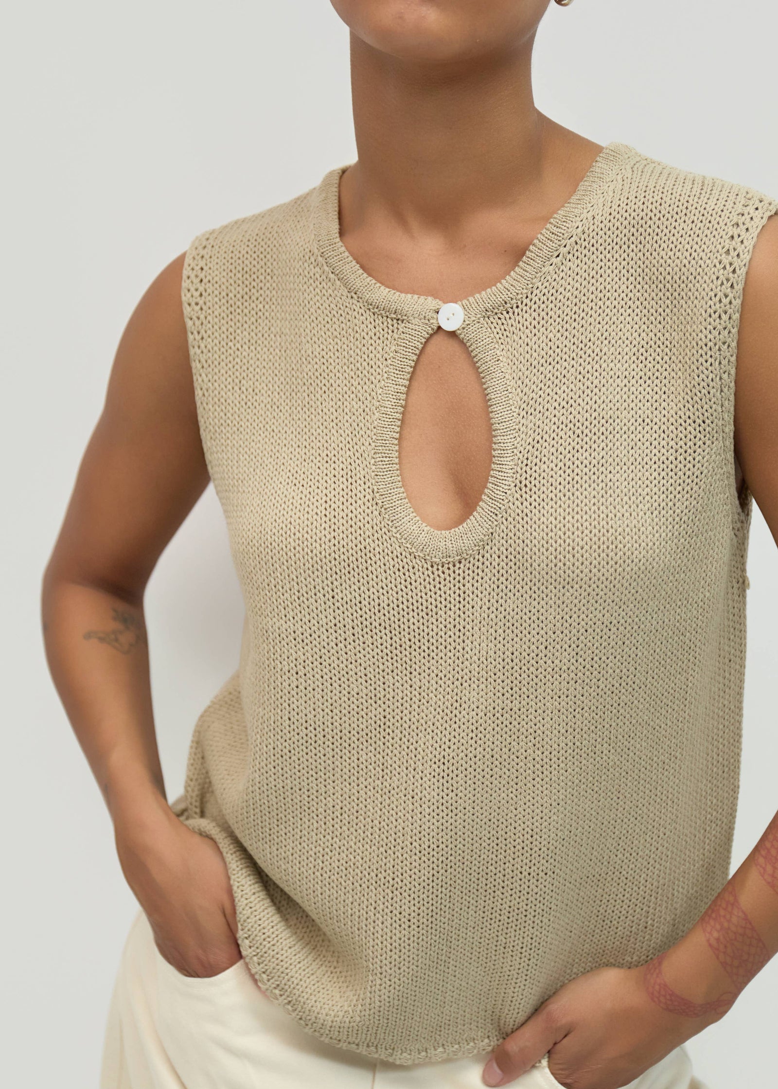$20.00 USDMolli Keyhole Knit Top in Beige