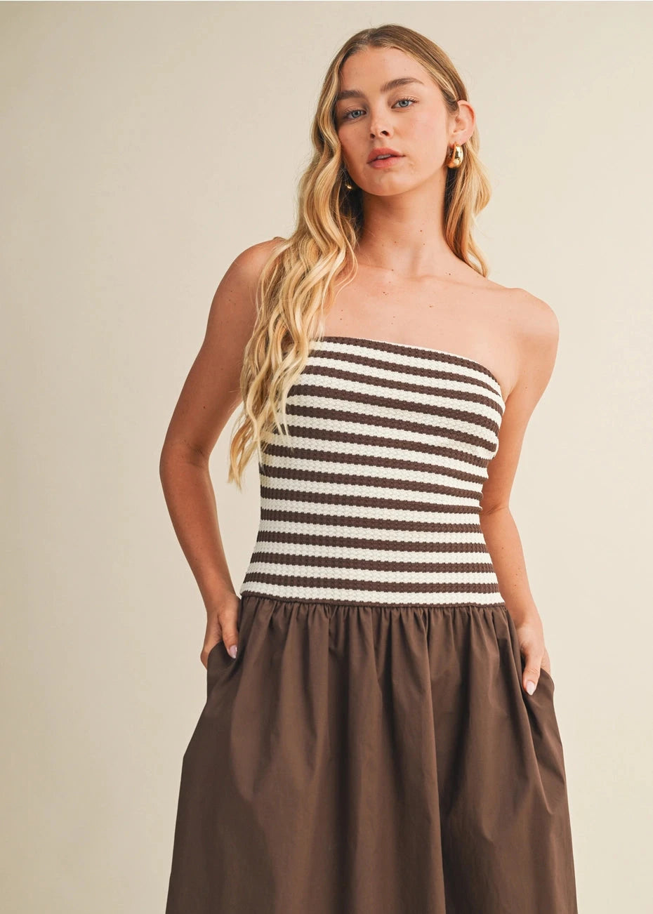 $62.00 USDMaggie Chocolate Striped Tube Dress