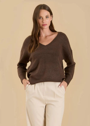 Morgan V Neck Pullover Sweater in Chocolate