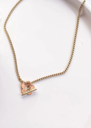 Add a touch of whimsy to your outfit with our Blossom Clasp Necklace. Made with 18k gold plated brass and stainless steel, the unique flower hook and eye closure adds a playful twist to this elegant piece. With its 18 inch chain, this necklace is the perfect accessory for any occasion.