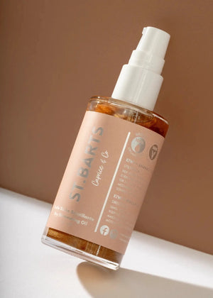 The illuminating dry body oil is made with 100% organic oils and provide a soft-shimmering shine for the body with a tint that gives a visibly gorgeous glow for all skin tones. Absorbs in seconds, leaving skin dry to the touch.